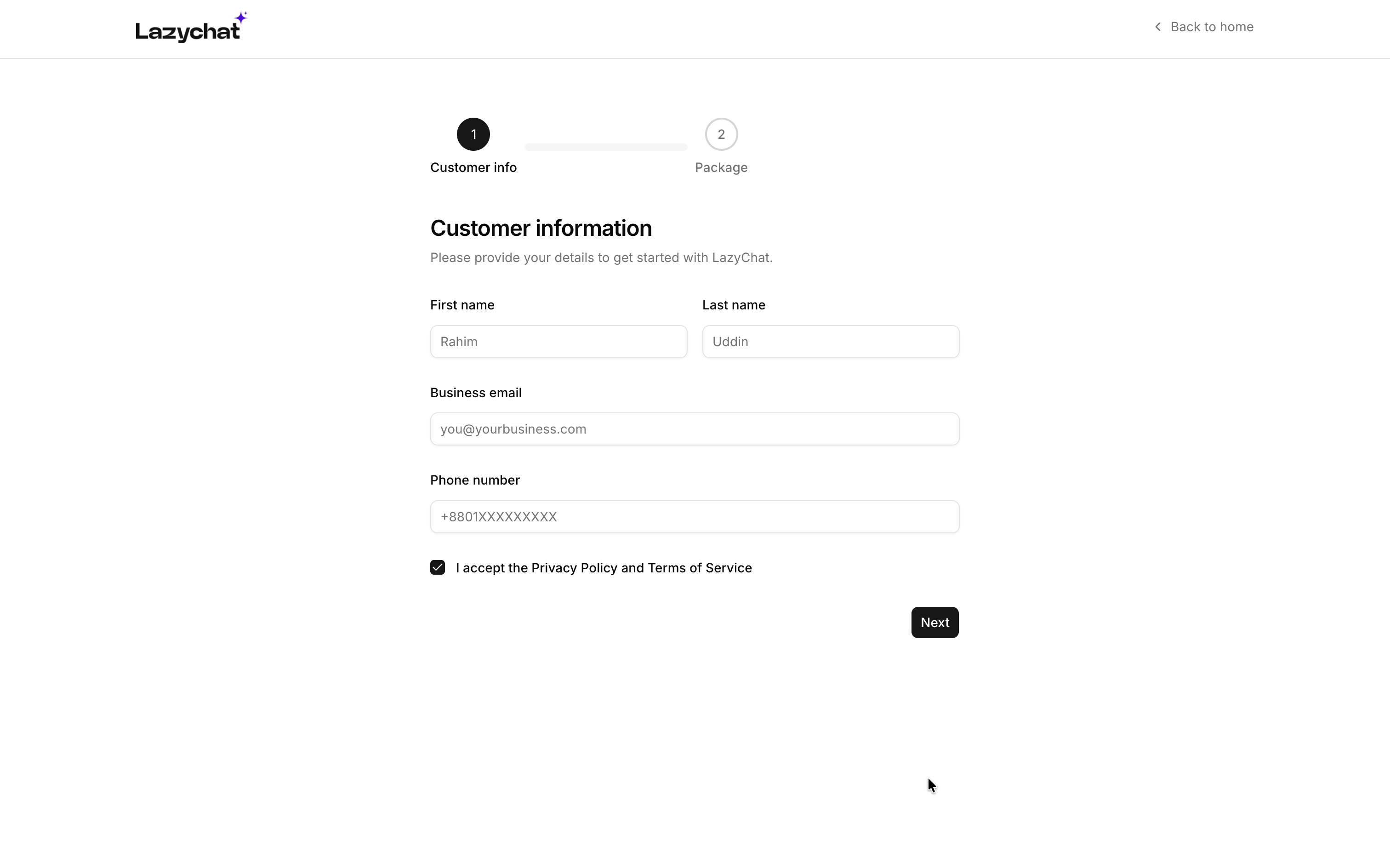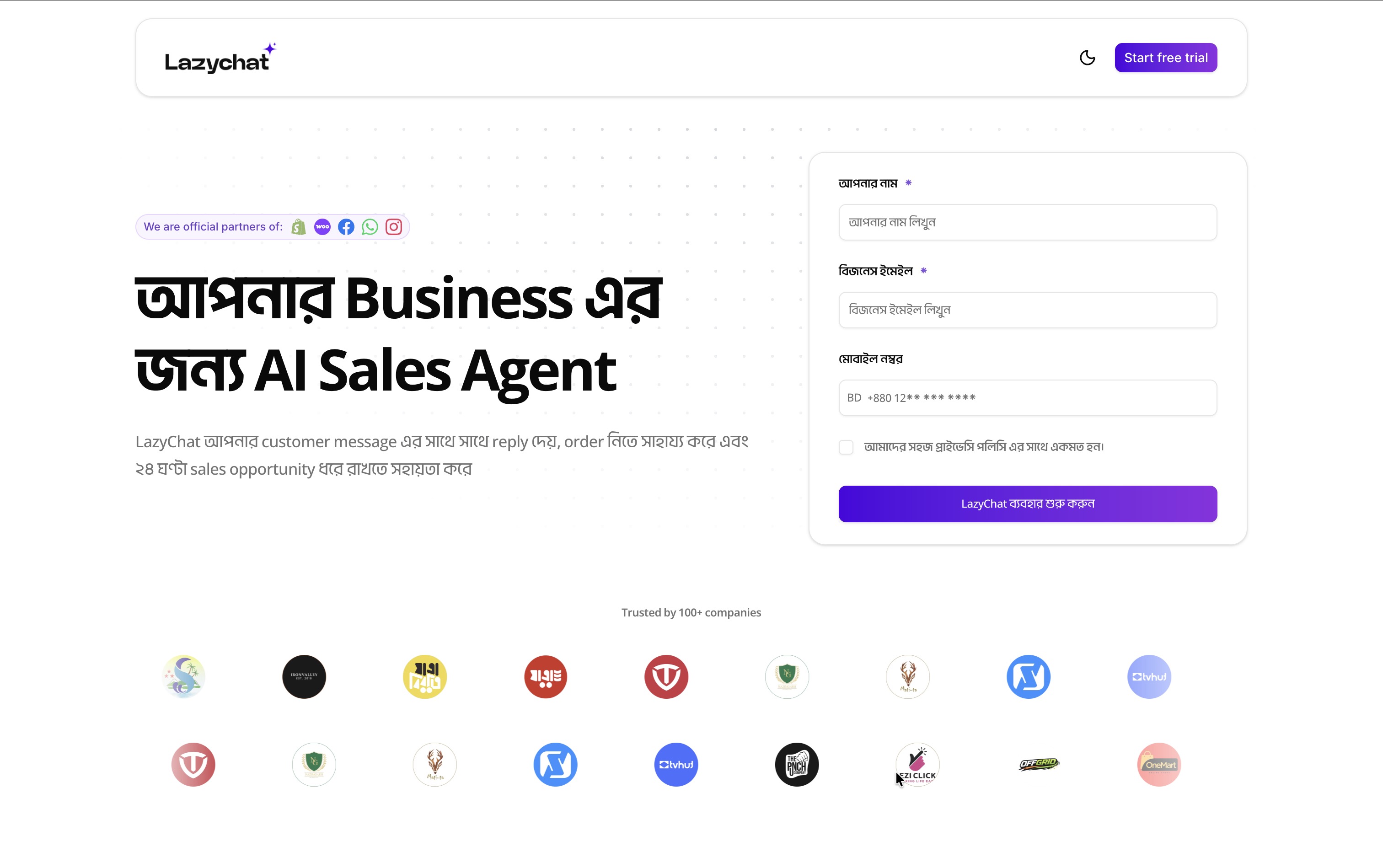 Then accept the privacy policy and click LazyChat ব্যবহার শুরু করুন / Start using LazyChat.