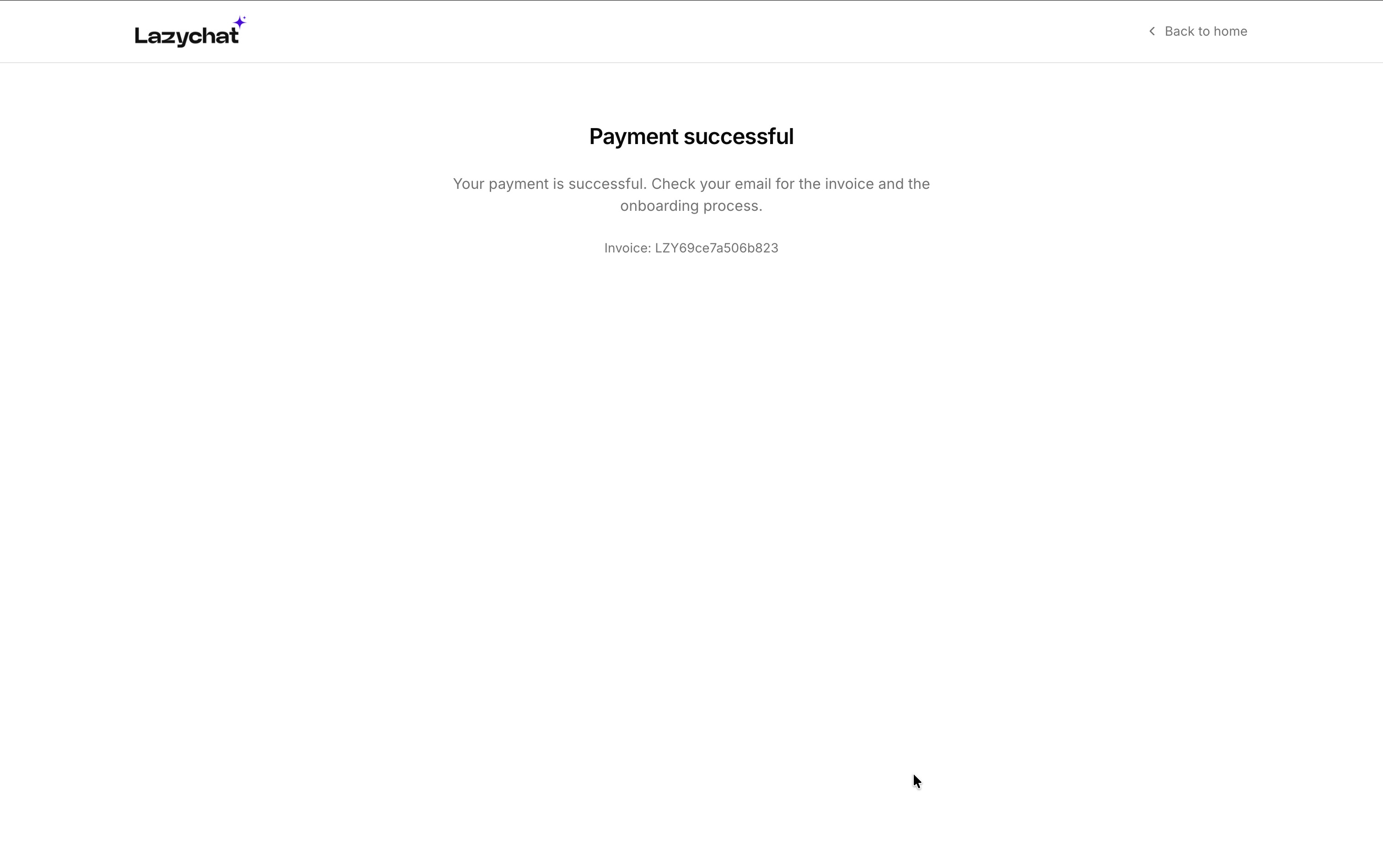 After payment, you will see the Payment successful screen along with the invoice ID.