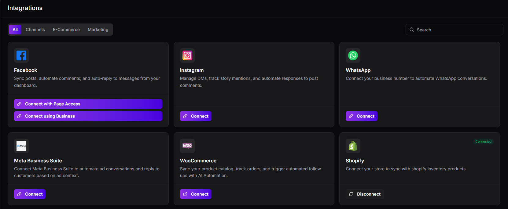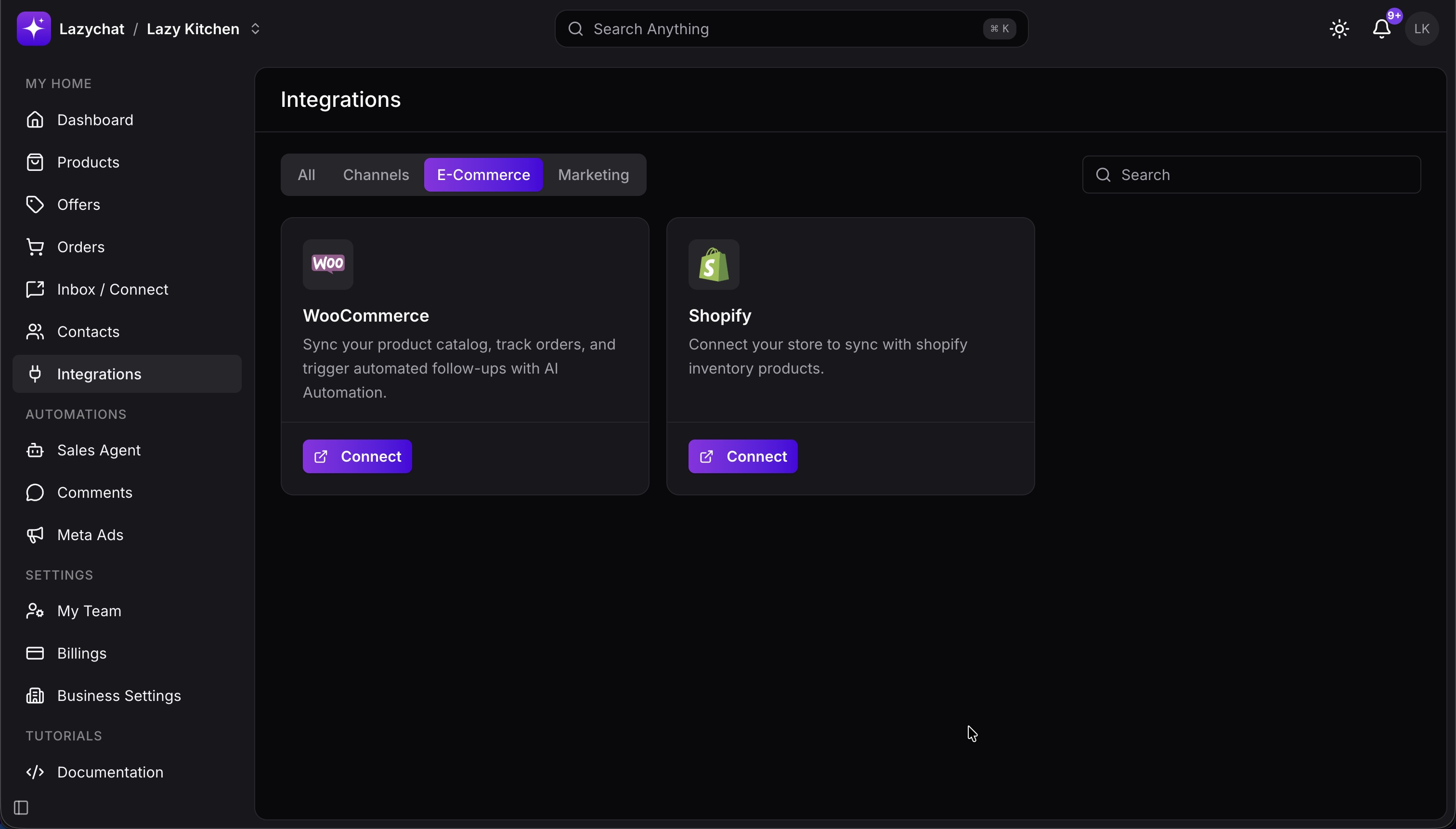 - Return to LazyChat (Lazychat Dashboard) → Integrations