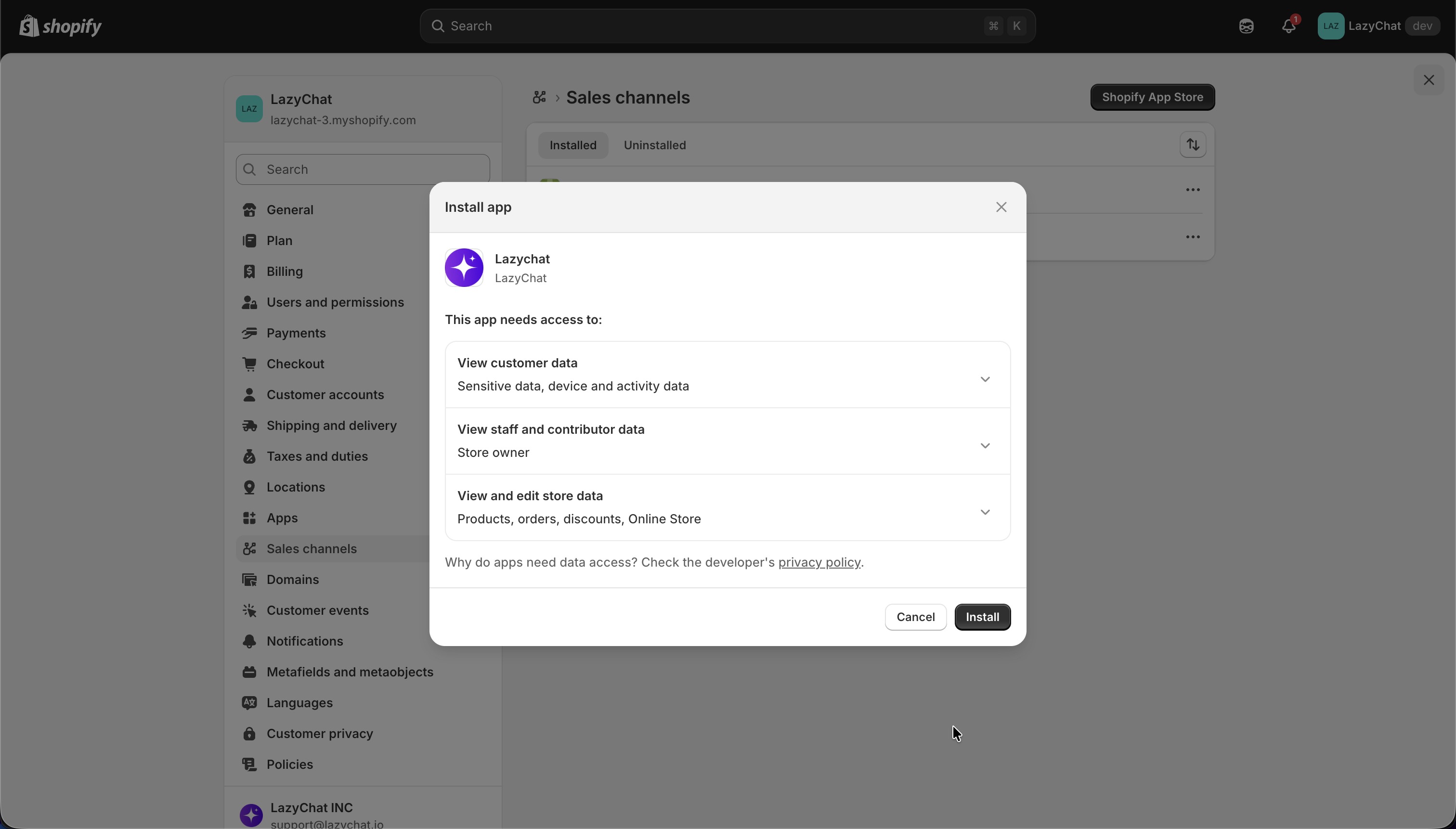 Step 2: Open the LazyChat app extension in Shopify App Store