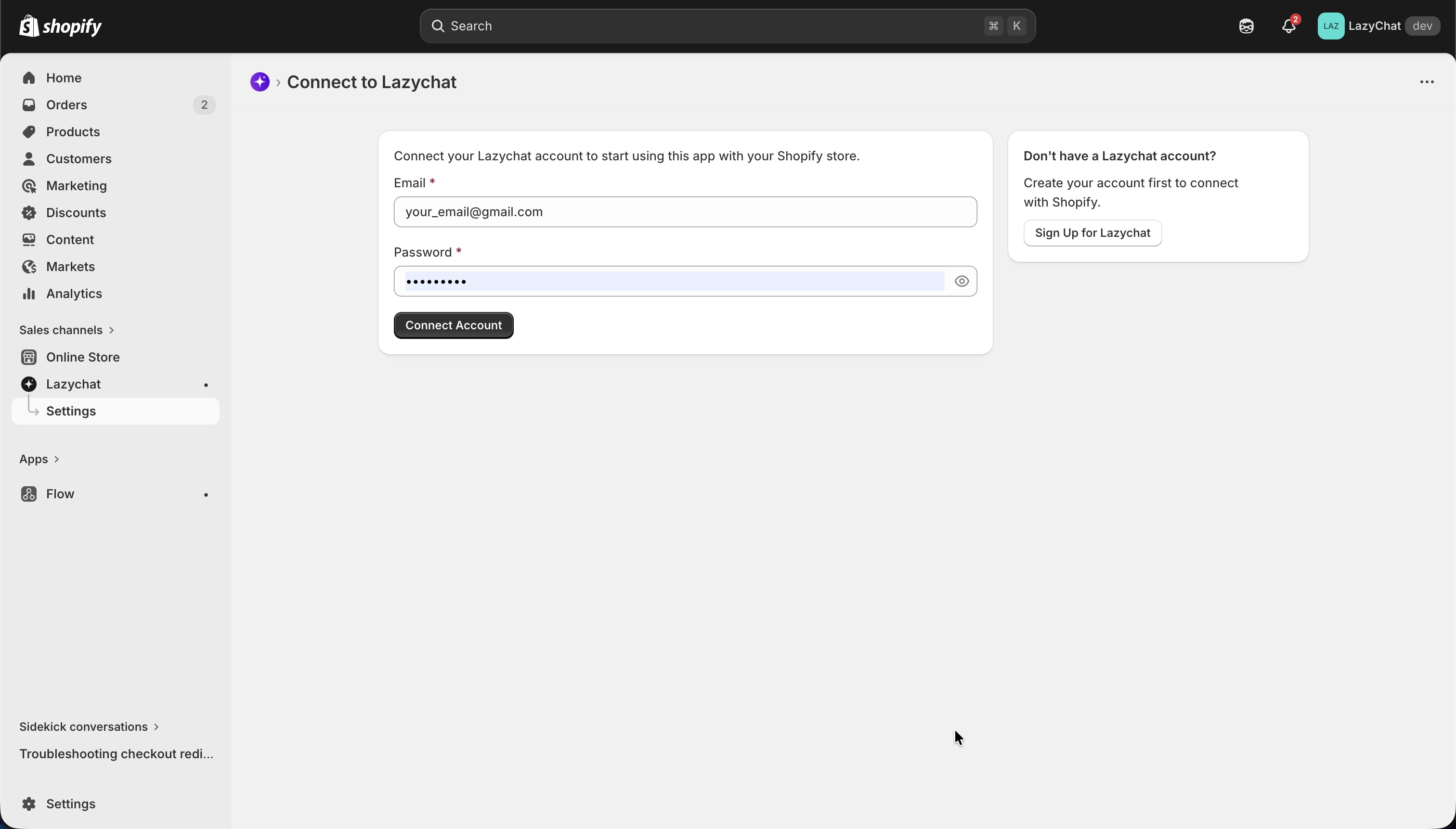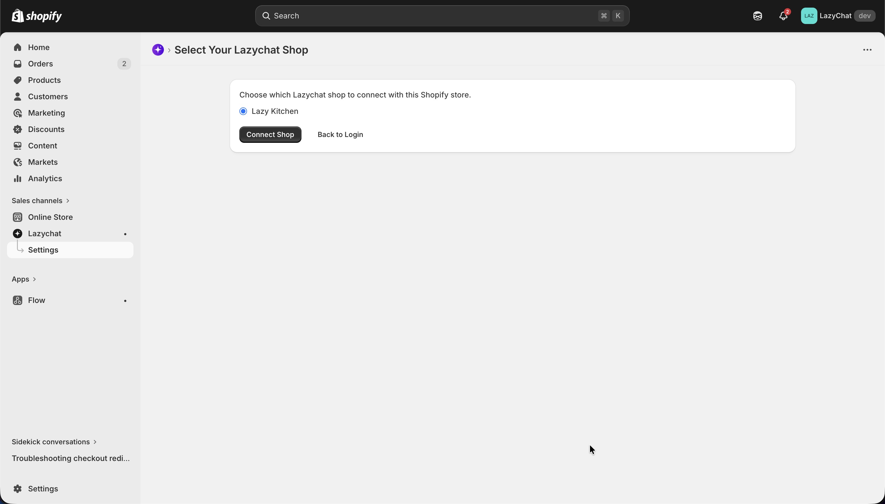 - Choose the LazyChat shop you want to connect with this Shopify store